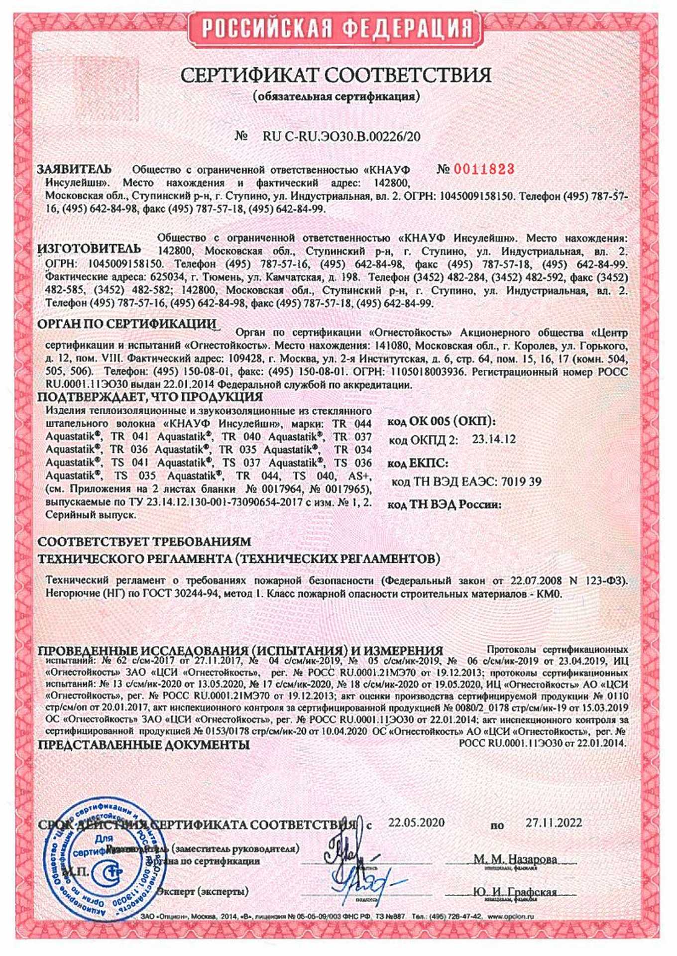 Подтвержденное сертификатами и действующими ГОСТ